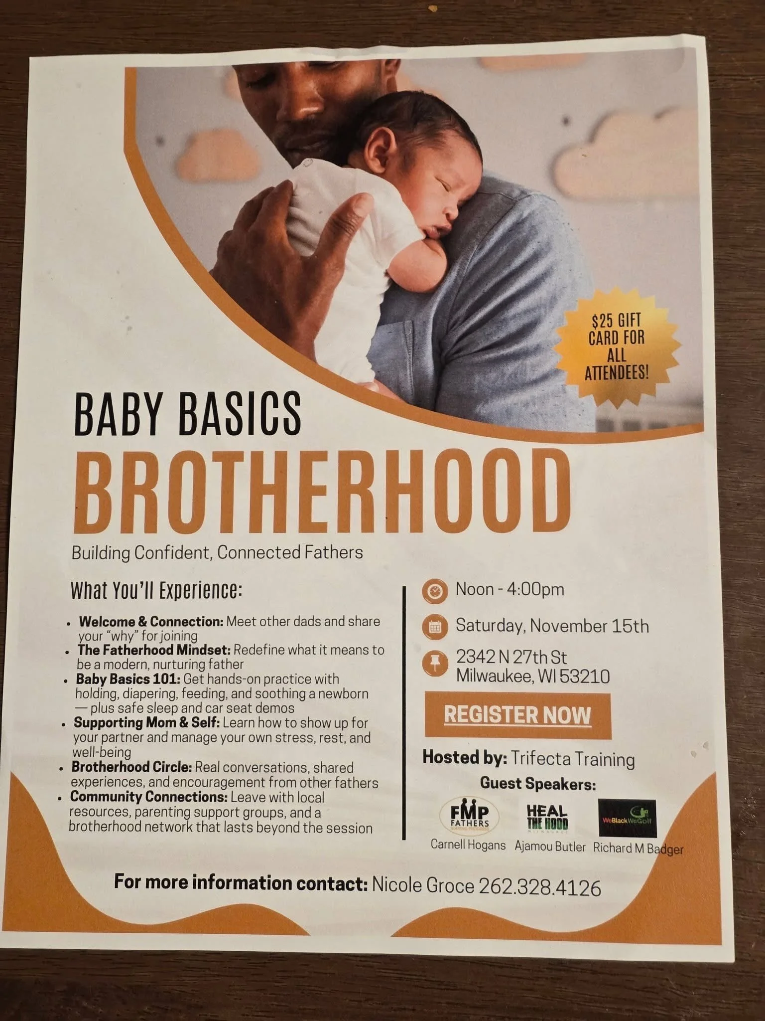 Nov 15 Baby Basics Brotherhood Saturday, November 15, 2025 12:00 PM 4:00 PM 2342 North 27th Street Milwaukee, WI, 53210 United States (map) Google Calendar ICS View Event →