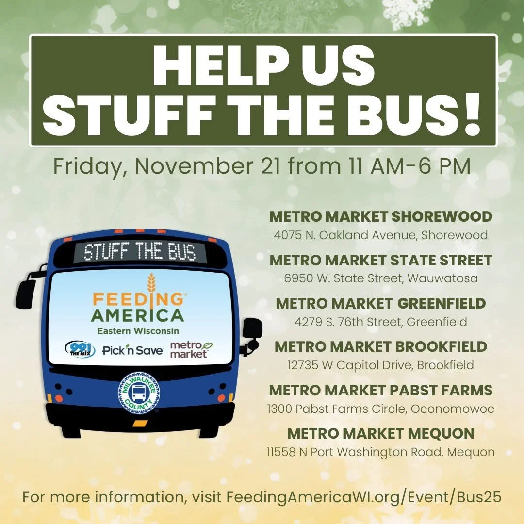 Nov 21 Stuff the Bus Friday, November 21, 2025 11:00 AM 6:00 PM See Flyer for ALL loactions (map) Google Calendar ICS View Event →