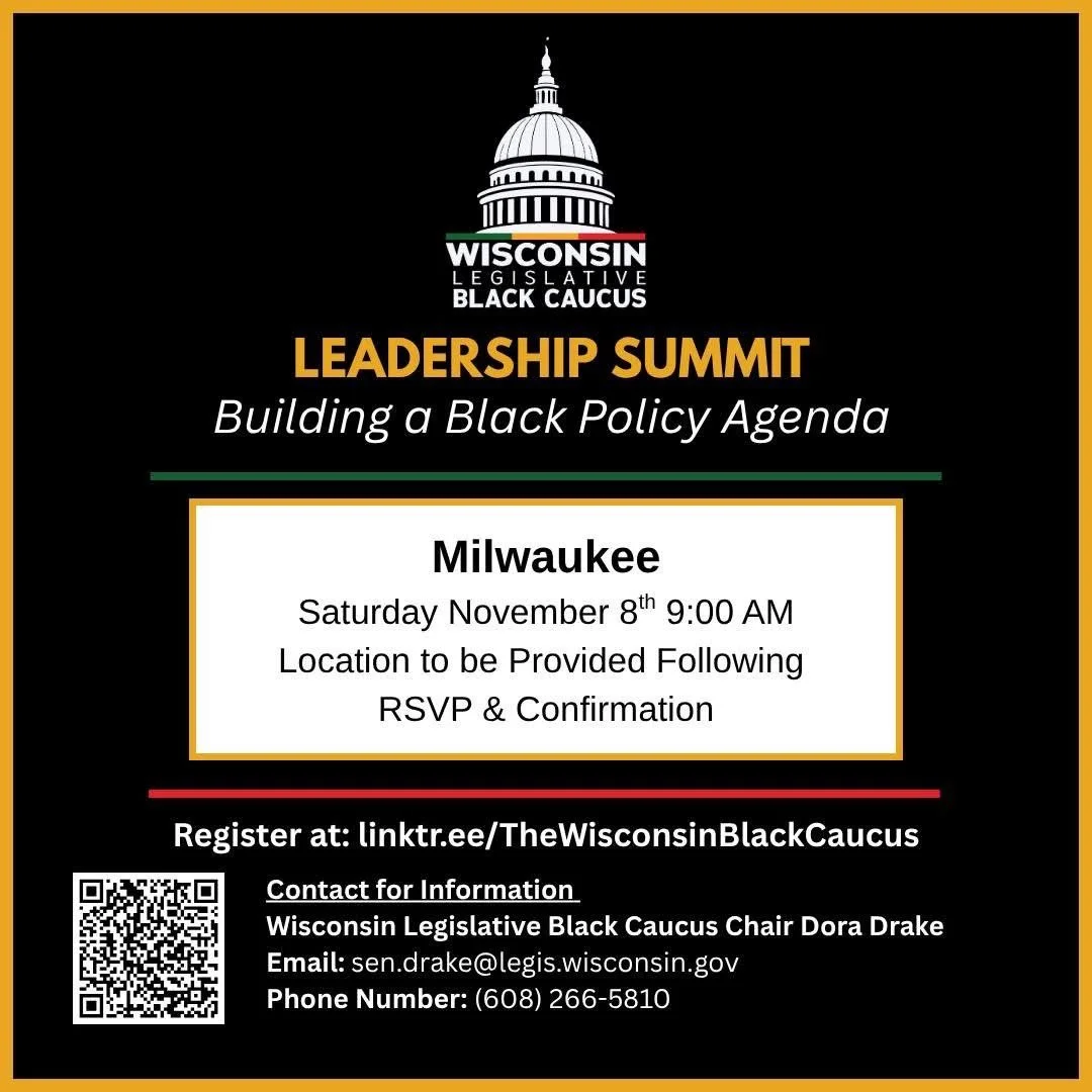 Oct 2 WISCONSIN LEGISLATIVE BLACK CAUCUS STATEWIDE LISTENING TOUR Building a Black Policy Agenda Thursday, October 2, 2025 5:00 PM 7:00 PM Wisconsin Voices Offices | Century Tower (map) Google Calendar ICS View Event →